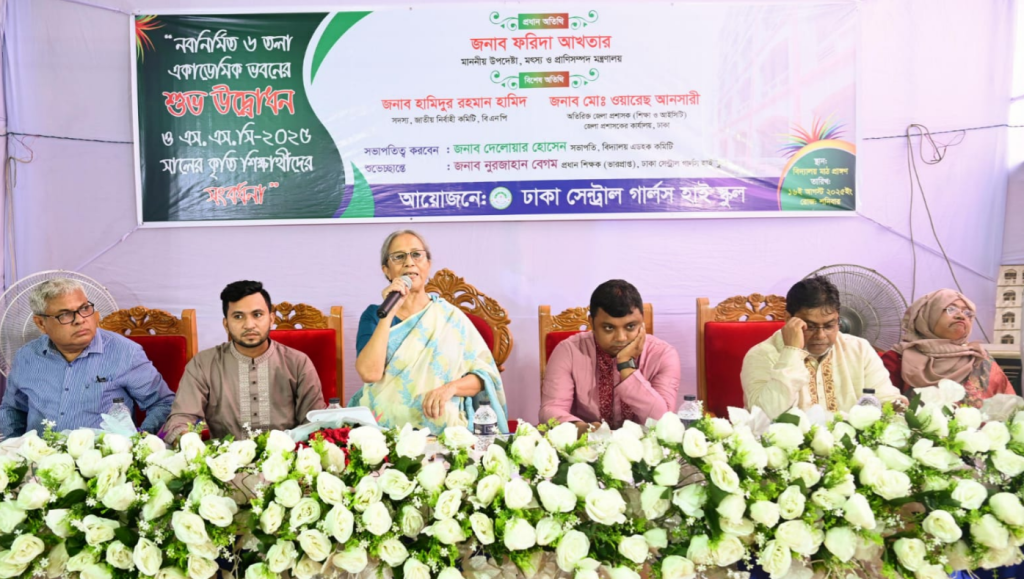 উপদেষ্টা আজ সকালে ঢাকা সেন্ট্রাল গার্লস হাই স্কুলে নবনির্মিত ৬ তলা একাডেমিক ভবনের উদ্বোধন ও এসএসসি ২০২৫ সালের কৃতি শিক্ষার্থীদের সংবর্ধনা অনুষ্ঠানে প্রধান অতিথির বক্তব্যে এ কথা বলেন।