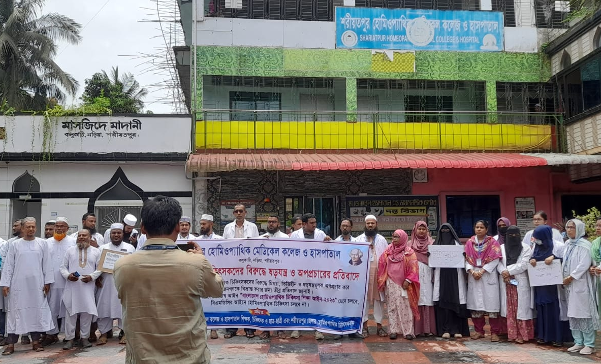 এসময় বক্তারা বলেন, বাংলাদেশের প্রচলিত হোমিওপ্যাথিক চিকিৎসা শিক্ষা আইন-২০২৩ অনুযায়ী হোমিও চিকিৎসকগণ ডা. উপাধি ব্যবহারের বৈধ অধিকার রাখেন। অথচ এ বিষয়কে অস্বীকার করে বিএমডিসি মিথ্যা প্রোপাগান্ডা চালাচ্ছে, যা অসাংবিধানিক, অনৈতিক এবং পেশাজীবী চিকিৎসকদের মর্যাদা ক্ষুণ্ণ করছে।
