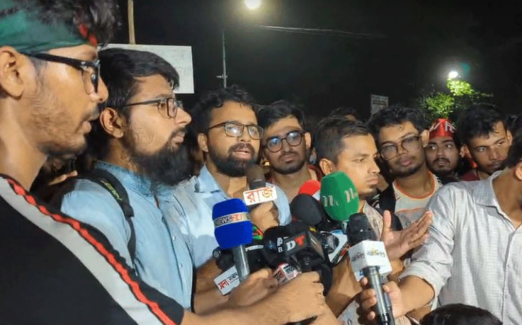 সংবাদ সম্মেলনে শাকিল আহমেদ বলেন, রংপুরে প্রকৌশলী রোকন আটকে রেখে হত্যার হুমকি দেওয়া হয়েছে। এই হুমকিদাতাদের গ্রেফতার করে আইনের আওতায় আনতে হবে। এটাই তাদের প্রথম দাবি। এছাড়া আগে যে তিন দফা দাবি জানিয়েছেন সে সব দাবি মেনে নিয়ে প্রজ্ঞাপন জারি করতে হবে। শিক্ষার্থীরা রাজধানীর ব্যস্ততম শাহবাগ মোড় অবরোধ করায় যানজটের ভোগান্তিতে পড়েছেন অফিস শেষে ঘরমুখী মানুষ। বিকাল ৩টা থেকে অবরোধের কারণে শাহবাগ মোড় দিয়ে সব ধরনের যান চলাচল বন্ধ হয়ে যায়। এতে আশপাশে তীব্র যানজট সৃষ্টি হয়।