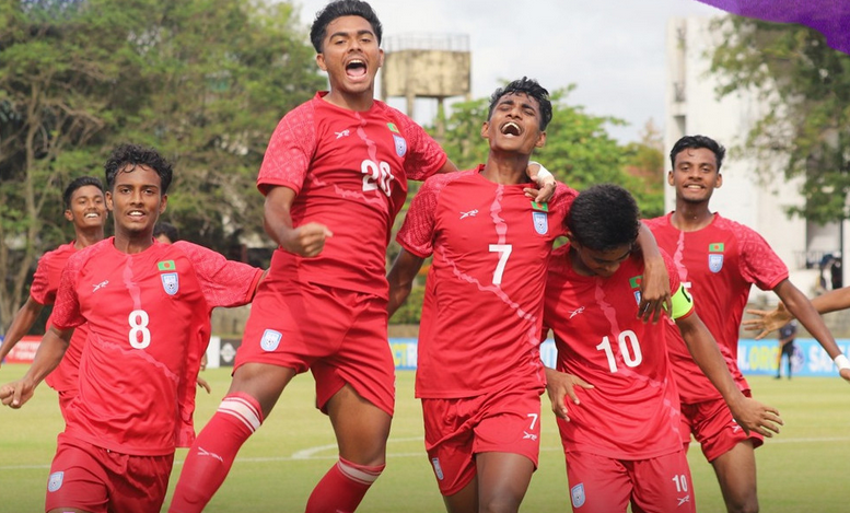 সাফ অনূর্ধ্ব-১৭ চ্যাম্পিয়নশিপে ফাইনালে উঠেছে বাংলাদেশ। কলম্বোয় পাকিস্তানকে ২-০ ব্যবধানে হারিয়েছে বাংলাদেশের যুবারা। দলের হয়ে গোল দুটি করেছেন নাজমুল হুদা ফয়সাল ও অপু রহমান।সেমিফাইনাল খেলতে নেমে তৃতীয় মিনিটে উচ্ছ্বাসে মাতে বাংলাদেশ।বাংলাদেশকে প্রথম লিড এনে দেন অধিনায়ক নাজমুল। তবে নাজমুলের গোলের পেছনে বড় অবদান পাকিস্তানের গোলরক্ষকের। সামার রাজ্জাকের ভুলে বল পান অপু। সেই বল পেয়েই নাজমুলকে পাস বাড়ান তিনি।