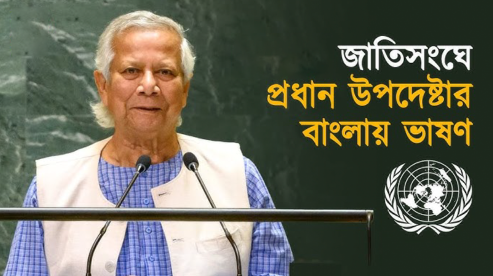 প্রধান উপদেষ্টা অধ্যাপক মুহাম্মদ ইউনূস জাতিসংঘ সাধারণ পরিষদের (ইউএনজিএ) ৮০তম অধিবেশনে ভাষণ দিচ্ছেন। শুক্রবার (২৬ সেপ্টেম্বর) বাংলাদেশ সময় রাত সাড়ে ৯টার দিকে তিনি ভাষণ শুরু করেন।