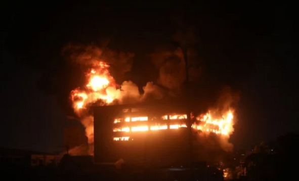 চট্টগ্রামে রপ্তানি প্রক্রিয়াকরণ অঞ্চল (ইপিজেড) এলাকার ‘আদম ক্যাপ্স’ নামের একটি টেক্সটাইল কারখানায় ভয়াবহ আগুন লাগার পাঁচ ঘণ্টা পেরিয়ে গেলেও এখনো নিয়ন্ত্রণে আসেনি। সময়ের সঙ্গে সঙ্গে বাড়ছে আগুনের দাপট, ঘটছে একের পর এক বিস্ফোরণ। আগুনের তীব্রতায় ভবনের কয়েকটি দেয়াল ও উপরের তলা ভেঙে পড়েছে।