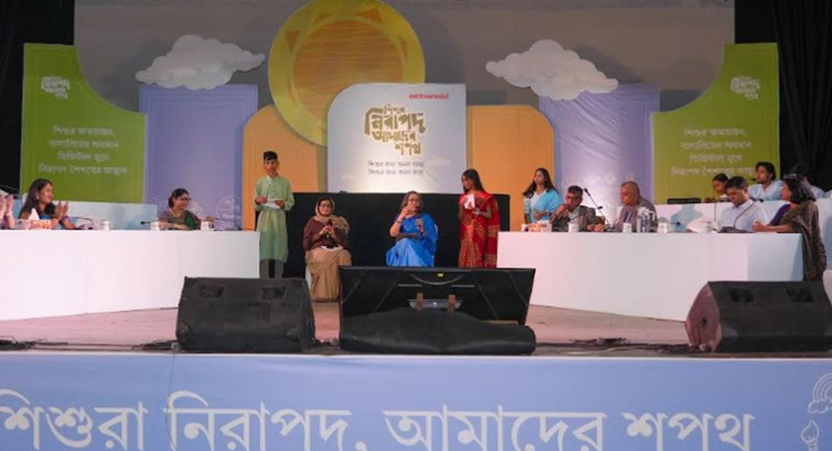 সম্মিলিত প্রচেষ্টা অত্যাবশ্যক।’বাংলাদেশ শিশু একাডেমি মহাপরিচালক দিলারা বেগম (অতিরিক্ত সচিব) বলেন, ‘বাংলাদেশ শিশু একাডেমি শিশুদের সৃজনশীলতা ও মনন বিকাশে কাজ করছে। আমরা অভিভাবকদের ইতিবাচক ও দায়িত্বশীল সন্তান প্রতিপালন বিষয়ে সচেতনতা বৃদ্ধিতে জোর দিচ্ছি। আমাদের শিশুরা যেন আত্মবিশ্বাসের সাথে নীতি-নির্ধারণী পর্যায়ে তাদের দাবিগুলো তুলে ধরে, সেই পরিবেশ নিশ্চিত করা আমাদের সবার দায়িত্ব।’ইউনিসেফের শিশু সুরক্ষার প্রধান মিস নাটালি ম্যাককলি বলেন, ‘শিশুদের ভবিষ্যতের অপরিহার্য নেতা হিসেবে বিবেচনা করতে হবে এবং তাদের কণ্ঠস্বর উপেক্ষা করা যাবে না। রাষ্ট্রীয় ব্যবস্থায় বিদ্যমান প্রাতিষ্ঠানিক শূন্যতা পূরণে নারী ও শিশু মন্ত্রণালয়ে শিশুদের কেন্দ্র করে একটি স্থায়ী ও স্বতন্ত্র বিভাগ গঠন করা যেতে পারে।’বাংলাদেশ টেলিযোগাযোগ নিয়ন্ত্রণ কমিশনের চেয়ারম্যান মোহাম্মাদ এমদাদ-উল-বারি বলেন, ‘শিশুদের জন্য নিরাপদ অনলাইন প্ল্যাটফর্ম