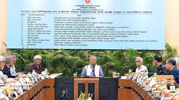 এ ছাড়া উপকূলীয় বন ব্যবস্থাপনার মাধ্যমে জলবায়ু সহনশীলতা বাড়ানো, মেহেরপুর সদরে কৃষি গবেষণা কেন্দ্র স্থাপন ও গবেষণা জোরদার, ঢাকা শহরের অবকাঠামো ও পরিবেশ উন্নয়ন এবং র্যাবের প্রযুক্তিগত সক্ষমতা বৃদ্ধির প্রকল্পও অন্তর্ভুক্ত রয়েছে।বৈঠকে উপস্থিত ছিলেন পরিকল্পনা উপদেষ্টা ওয়াহিদ উদ্দিন মাহমুদ, আইন, বিচার ও সংসদবিষয়ক ও প্রবাসীকল্যাণ উপদেষ্টা ড. আসিফ নজরুল, স্বরাষ্ট্র ও কৃষি উপদেষ্টা লেফটেন্যান্ট জেনারেল (অব.) মো. জাহাঙ্গীর আলম চৌধুরী, শিল্প ও গৃহায়ণ উপদেষ্টা আদিলুর রহমান খান, বিদ্যুৎ, জ্বালানি, সড়ক পরিবহণ ও রেলপথ উপদেষ্টা মুহাম্মদ ফাওজুল কবির খান, পরিবেশ ও পানিসম্পদ উপদেষ্টা সৈয়দা রিজওয়ানা হাসান, স্থানীয় সরকার ও যুব উপদেষ্টা আসিফ মাহমুদ সজীব ভূঁইয়া, স্বাস্থ্য উপদেষ্টা নূরজাহান বেগম, দুর্যোগ ব্যবস্থাপনা ও মুক্তিযুদ্ধ উপদেষ্টা ফারুক ই আজম (বীরপ্রতীক) এবং পররাষ্ট্র উপদেষ্টা মো. হোসেনসহ বিভিন্ন মন্ত্রণালয়ের ঊর্ধ্বতন কর্মকর্তারা।