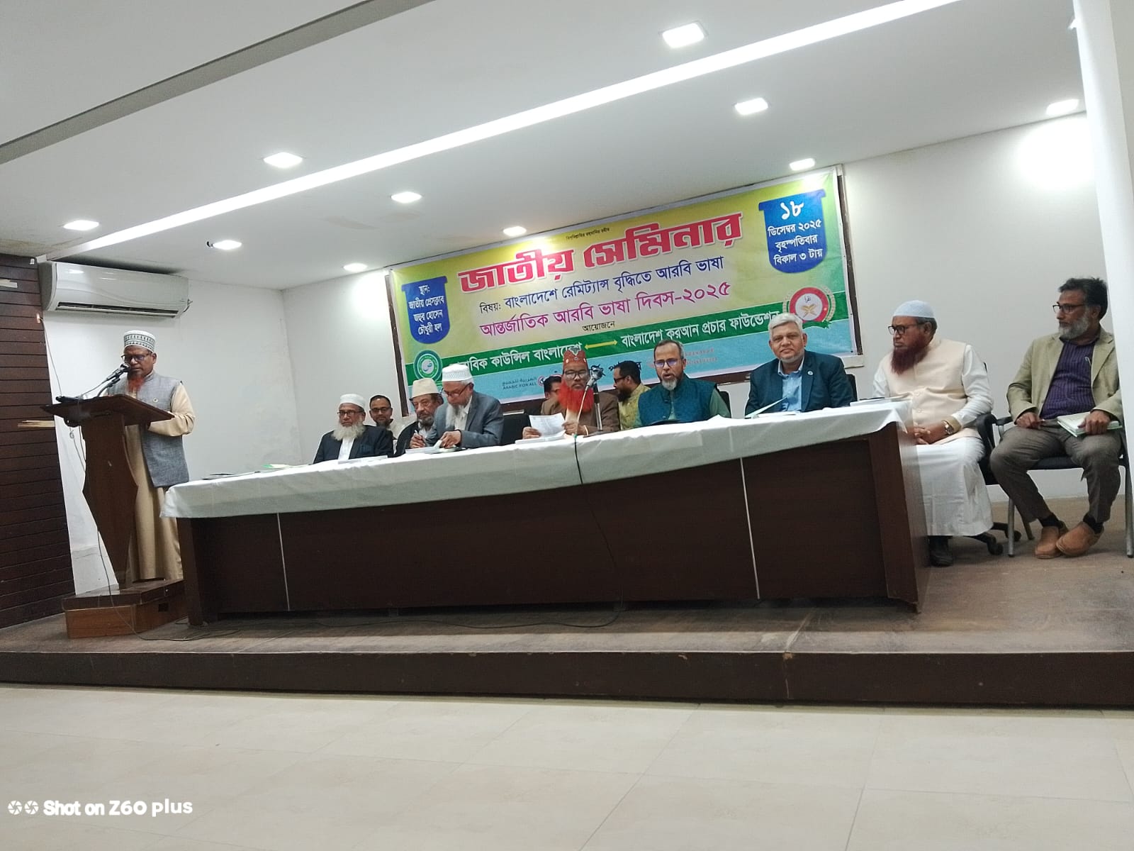 সভাপতি, অধ্যাপক ডক্টর মো: আবদুল কাদির সভাপতি, এরাবিক কাউন্সিল বাংলাদেশ সভাপতি, ঢাকা বিশ্ববিদ্যালয় আরবি বিভাগ এলামনাই এসোসিয়েশন এর সভাপতিত্বে, সঞ্চালক মুহাম্মদ নুরুজ্জামান নির্বাহী পরিচালক, বাংলাদেশ কুরআন প্রচার ফাউন্ডেশন, এর সঞ্চালনায়, সম্মানিত অতিথি হিসেবে উপস্থিত ছিলেন, অধ্যাপক ডক্টর মো : শামসুল আলম মাননীয় উপাচার্য, ইসলামি আরবি বিশ্ববিদ্যালয়, অধ্যাপক ডক্টর মোহাম্মদ শহিদুল ইসলাম উপ -উপাচার্য, ইসলামী আরবি বিশ্ববিদ্যালয়, ইঞ্জিনিয়ার মো: তামজিদুর রহমান প্রধান উপদেষ্টা, বাংলাদেশ কুরআন প্রচার