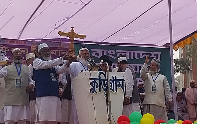 সত্য মেঘের আড়ালে ঢাকা থাকে না। সূর্যকে মেঘ ঢেকে রাখতে পারে না। মঞ্চে কুড়িগ্রাম-১ আসনে জামায়াতের প্রার্থী আনোয়ারুল ইসলাম, কুড়িগ্রাম-৩ আসনে জামায়াতের প্রার্থী মাহবুবুল আলম সালেহী এবং কুড়িগ্রাম-৪ আসনে জামায়াতের প্রার্থী মোস্তাফিজুর রহমানের হাতে দাঁড়িপাল্লা প্রতীক তুলে দিয়ে পরিচয় করিয়ে দেন প্রধান অতিথি ডা. শফিকুর রহমান। এছাড়া কুড়িগ্রাম-২ আসনের ১১ দলীয় জোট সমর্থিত এনসিপির প্রার্থী ড. আতিকুর রহমানকে শাপলা কলি মার্কায় ভোট দিয়ে বিজয়ী করার আহ্বান জানান। কুড়িগ্রাম জেলা জামায়াতের আমির অধ্যাপক আজিজুর রহমান স্বপনের সভাপতিত্বে আরো বক্তব্য দেন- এনসিপির সদস্য সচিব আখতার হোসেন, জেলা জামায়াতের সেক্রেটারি নিজাম উদ্দিন, সহ-সেক্রেটারি মাওলানা আব্দুল হামিদ, শাহজালাল হক সবুজ, জেলা বায়তুলমাল সম্পাদক জহরুল ইসলাম, অ্যাডভোকেট ইয়াসিন আলী, এনসিপির জেলা আহ্বায়ক মুকুল মিয়া, খেলাফত মজলিসের রংপুর অঞ্চলের সহকারী পরিচালক সবের মিয়া প্রমুখ। জামায়াত আমির বলেন, দমন-পীড়ন কিংবা সংকট-কোনো পরিস্থিতিতেই জনগণকে ছেড়ে যায়নি জামায়াত; ভবিষ্যতেও যাবে না।