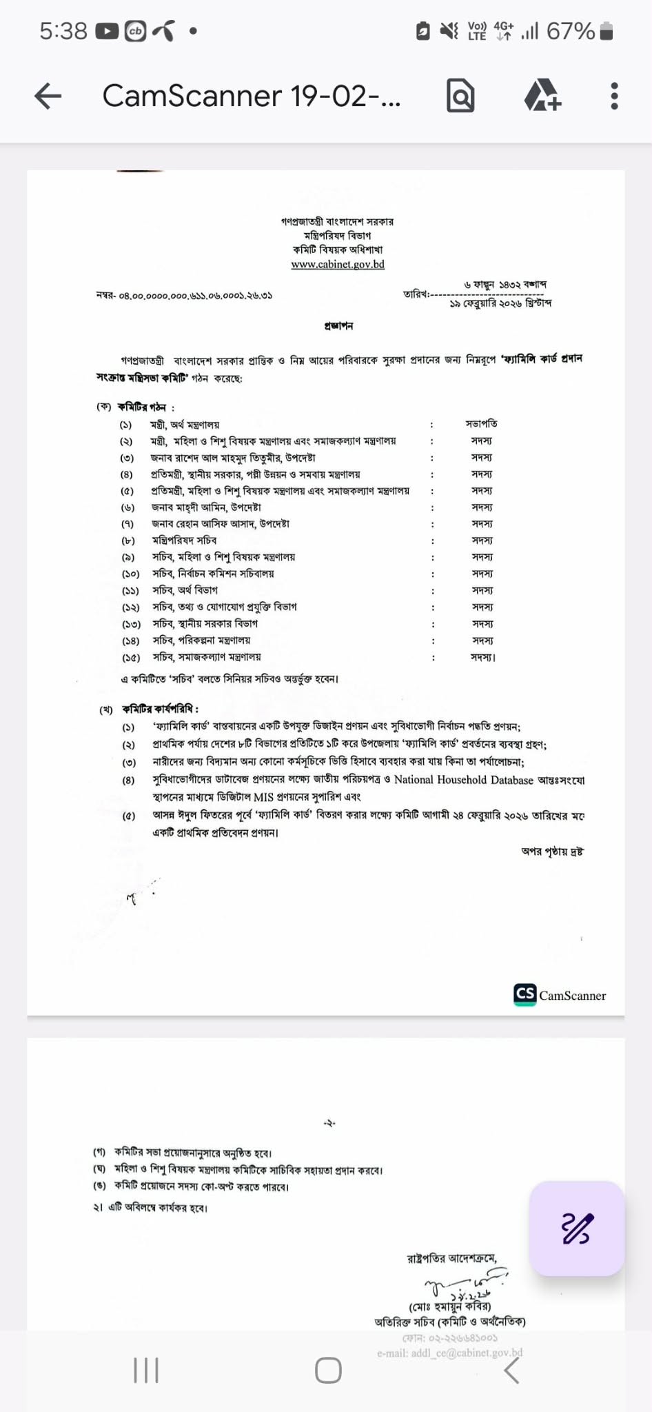 ফ্যামিলি কার্ড প্রদান সংক্রান্ত মন্ত্রিসভা কমিটি গঠন করেছে সরকার। বৃহস্পতিবার (১৯ ফেব্রুয়ারি) মন্ত্রিপরিষদ বিভাগের কমিটি বিষয়ক অধিশাখা থেকে এ বিষয়ে প্রজ্ঞাপন জারি করা হয়েছে।