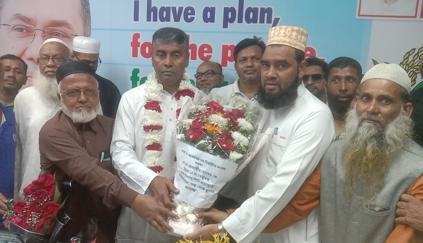 ঢাকা-১৮ আসন থেকে নবনির্বাচিত সংসদ সদস্য এস এম জাহাঙ্গীর হোসেনকে ফুলেল শুভেচ্ছা জানিয়েছেন মাওলানা এফ এম ইবরাহীম।